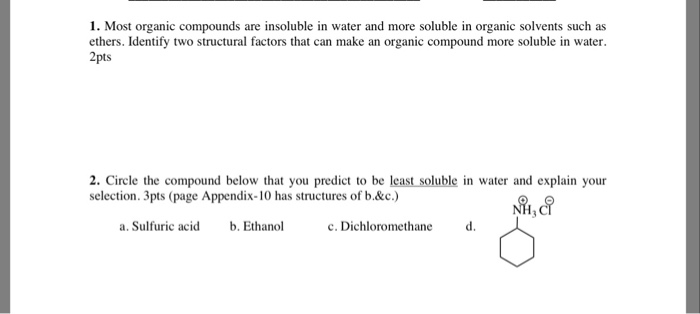 Solved 1 Most Organic Compounds Are Insoluble In Water And Chegg Com